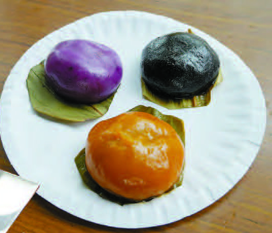 今日的茶粿不一定只加入雞屎藤或鼠麴草,還會加入紫薯、番薯等,不單色彩鮮艷,而且美味可口! 葉德平圖片